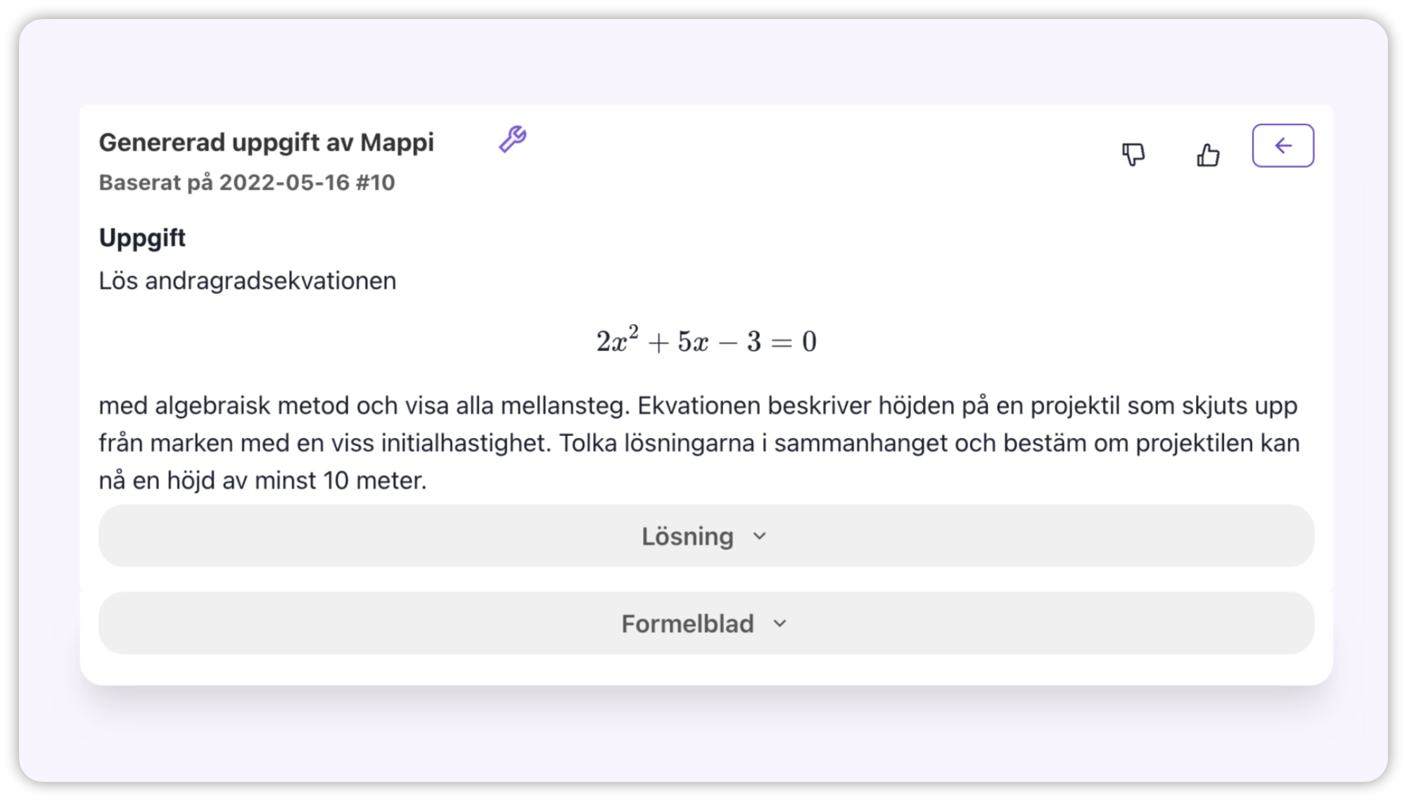 Figure1. Generated Mappi math exercise (available only in Swedish)