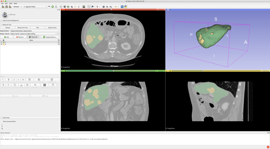 3D Slicer working environment with possible output obtained by automatic segmentation on HPC cluster