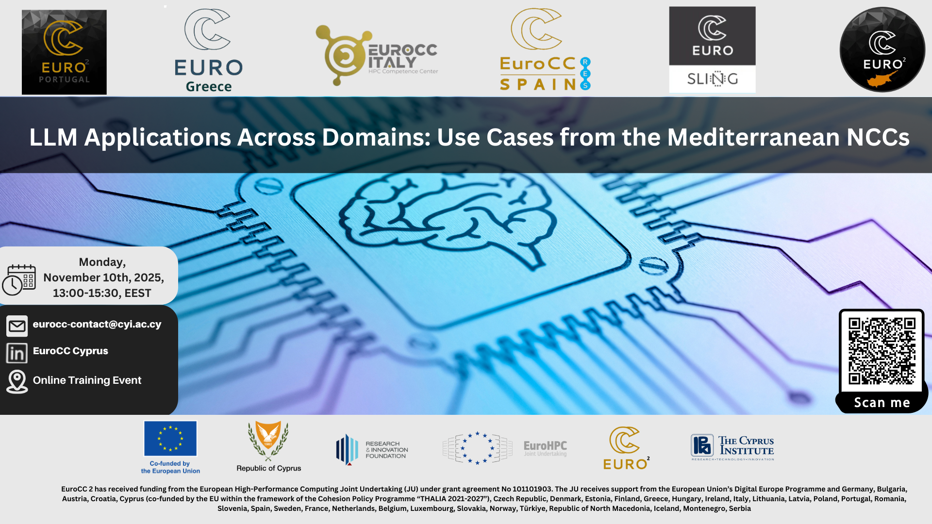 Large Language Models (LLMs) are rapidly transforming research and industry alike, offering new capabilities for automation, understanding, and decision support across diverse sectors. This event, LLM Applications Across Domains: Use Cases from the Mediterranean NCCs, showcases practical examples of how National Competence Centres (NCCs) in the Mediterranean region are applying LLMs and related AI technologies to real-world challenges. Presentations will span topics such as secure private AI deployments, domain-specific fine-tuning for satellite communications, intelligent agents for cyber defense, steerable computer vision pipelines, multimodal archaeological site detection, and enhanced optical character recognition. Through these use cases, participants will gain insights into innovative approaches that leverage LLMs for science, industry, and society, highlighting both the opportunities and technical nuances of deploying generative AI responsibly and effectively.